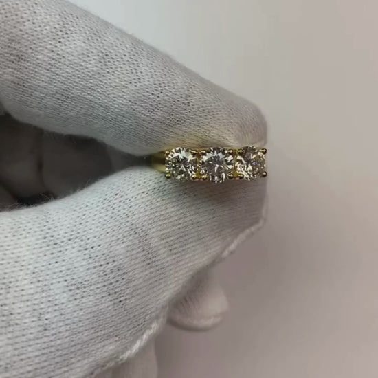 Gorgeous 1.51 Ct Round Brilliant Mined Diamond Three Stone Ring Yellow Gold