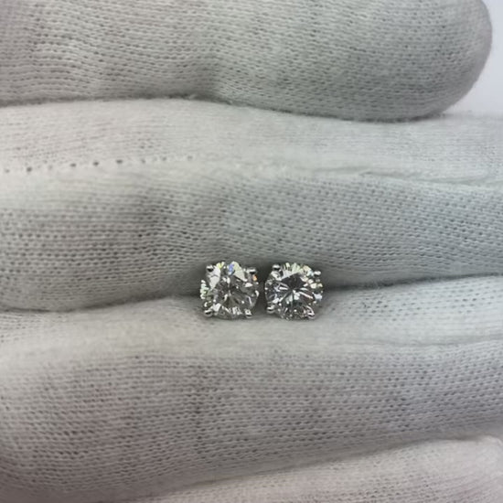 Stone Specifications: There is one diamond approx. 1 carat each (approx dia. 6.4 mm) in each earring. Natural earth mined diamonds.