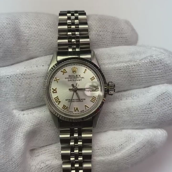 Gray Roman Dial Rolex Datejust Women Bezel Jubilee Ss