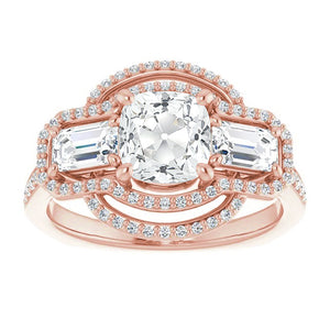 Halo Emerald & Cushion Old Cut Natural Earth Mined Diamond Ring Prong Set 11.50 Carats