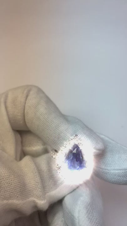 Stone Details : There is one pear cut blue sapphire in the center approx. 6 carats (Approx. Size 15 x 9 mm) and approx. 2 carats of round diamonds on the sides in this ring. Natural earth mined stones.