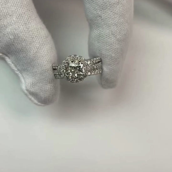 Halo Old Miner Natural Earth Mined Diamond Wedding Ring Set Double Split Shank 5.50 Carats