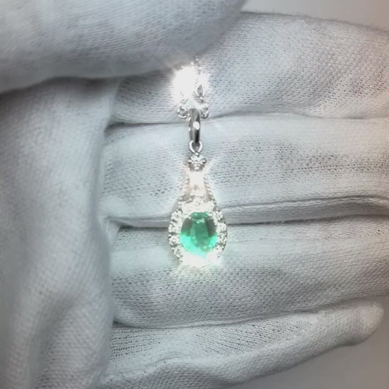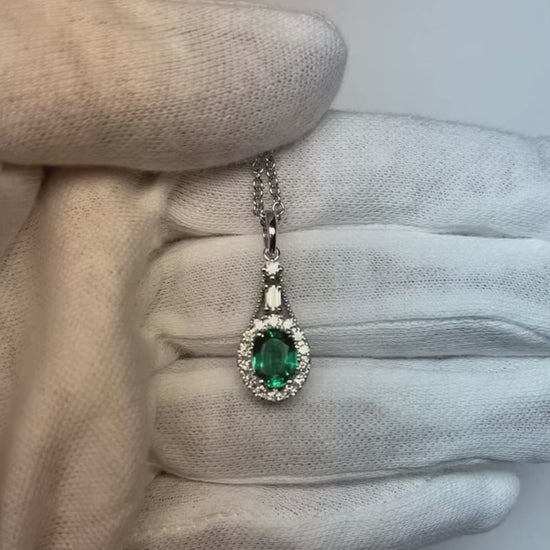 Halo Oval Ceylon Sapphire Pendant Round & Emerald Natural Earth Mined Diamond 2.75 Carats