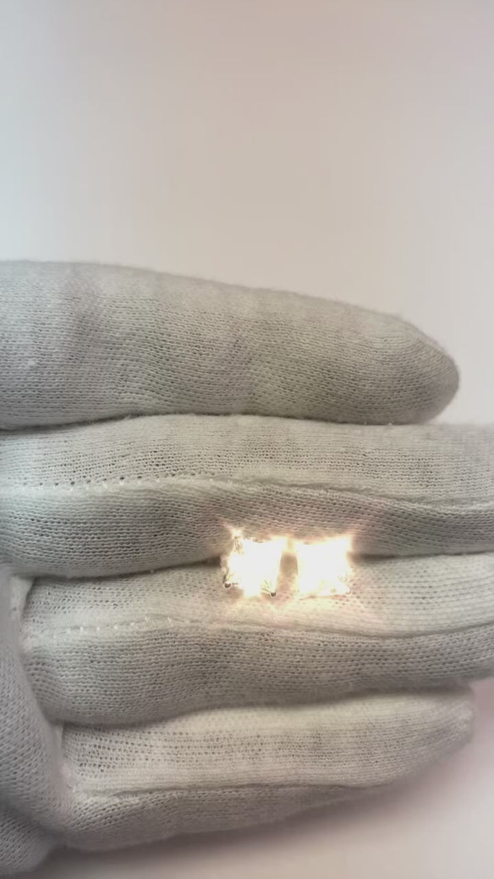Stone Specifications : There is one diamond approx. 1.75 carats (approx. size 7.2x7.2 mm) in each earring. Natural earth mined diamonds.