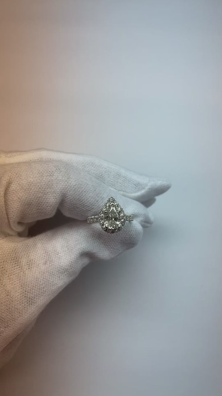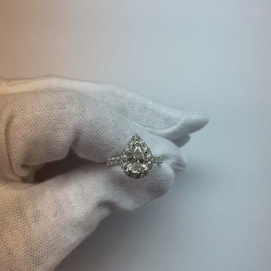 Halo Pear Natural Earth Mined Diamond Anniversary Ring 2.75 Carats White Gold 14K