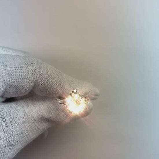 Stone Details : There is one center pear cut diamond approx. 1.50 carats (Approx. Size 8.8 x 5.8 mm) and smaller round diamonds on the sides approx. 1.25 carats. Natural earth mined diamonds.