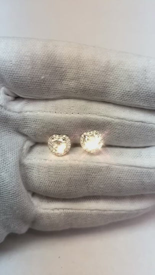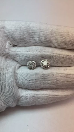Heart & Round Cut Halo Real Natural Earth Mined Diamond Stud Earring 2.40 Carat White Gold 14K