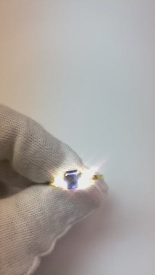 Stone Details : There is one asscher cut sapphire approx. 1.50 carats (Approx. Size 6 x 6 mm) and two asscher diamonds approx. 0.25 carats each (Approx. Size 3.9 x 2.8 mm) on the sides. Natural earth mined stones.
