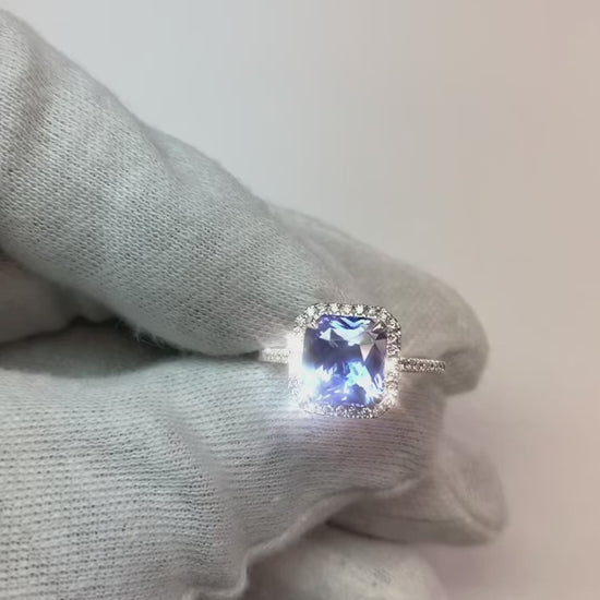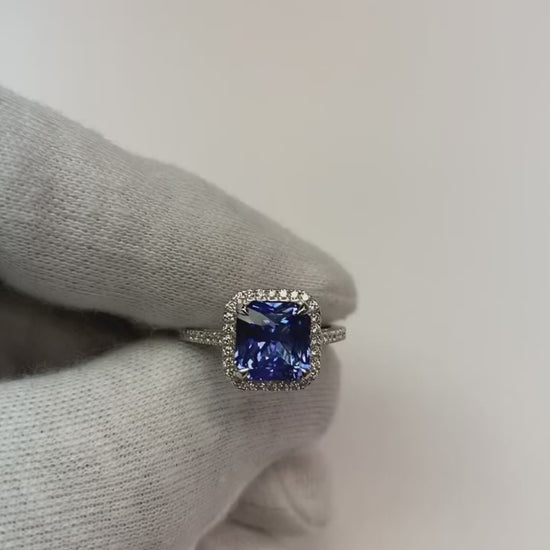 Ladies Halo Natural Earth Mined Diamond Jewelry Ceylon Sapphire Prong Set Gold 5 Carats