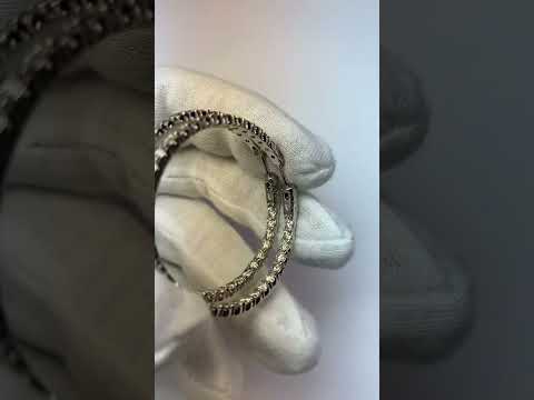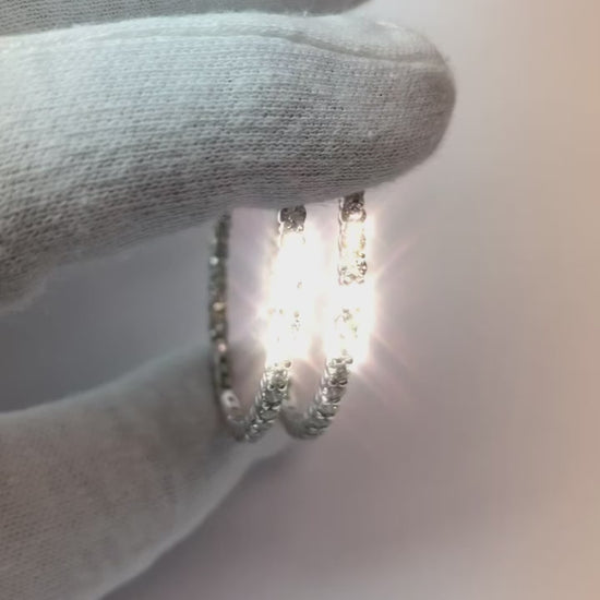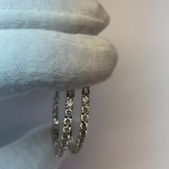 Ladies Hoop Earrings 7 Ct Brilliant Cut Natural Earth Mined Diamonds White Gold 14K
