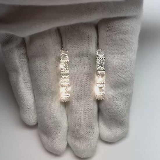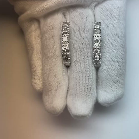 Ladies Princess Cut Natural Earth Mined Diamond Hoop Earring Solid Gold 14K 6 Carats
