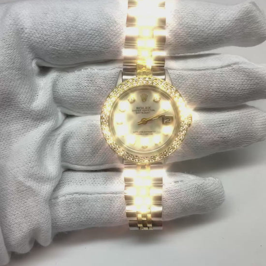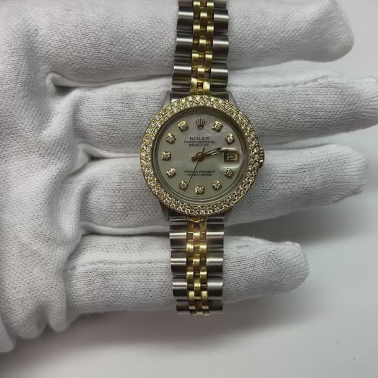 Ladies Rolex Datejust 26 mm Mother Of Pearl Dial Double Row Diamond Bezel