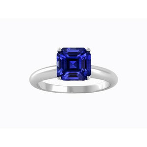 Ladies Solitaire Asscher Shaped Ring Blue Sapphire 1.50 Carats