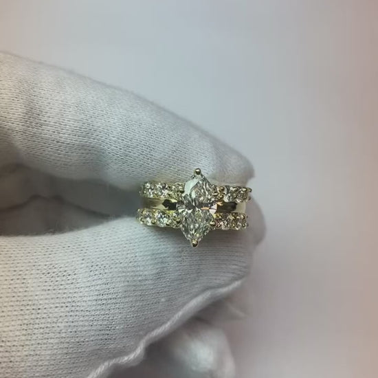 Marquise Mined Diamond Wedding Ring Bridal Jewelry Yellow Gold