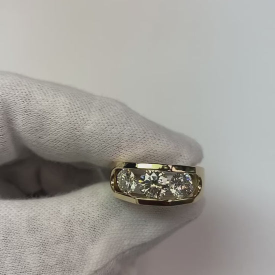Men's Natural Earth Mined Diamond Ring 3 Stone Gold 2 Carats