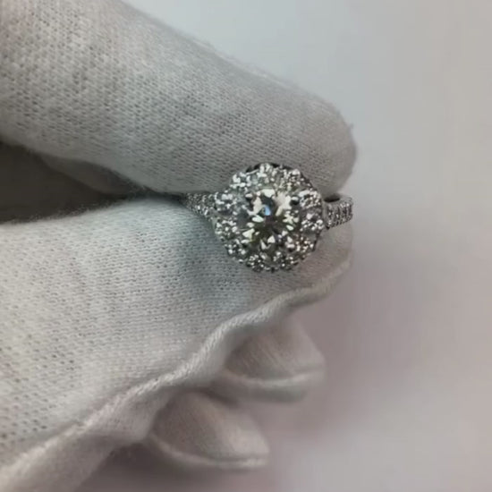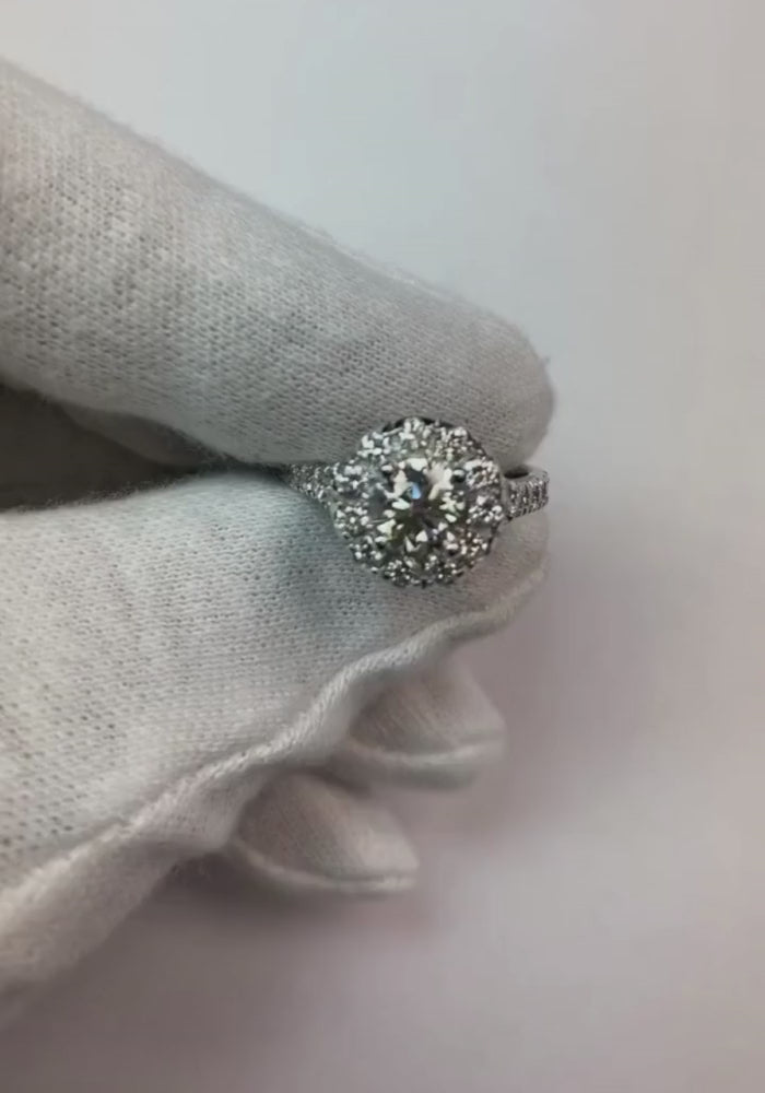 2 Ct Round Prong Set Natural Earth Mined Diamond Wedding Ring Halo 14K White Gold