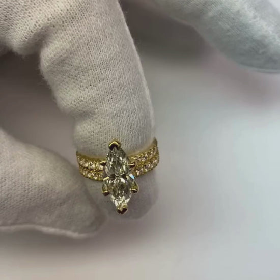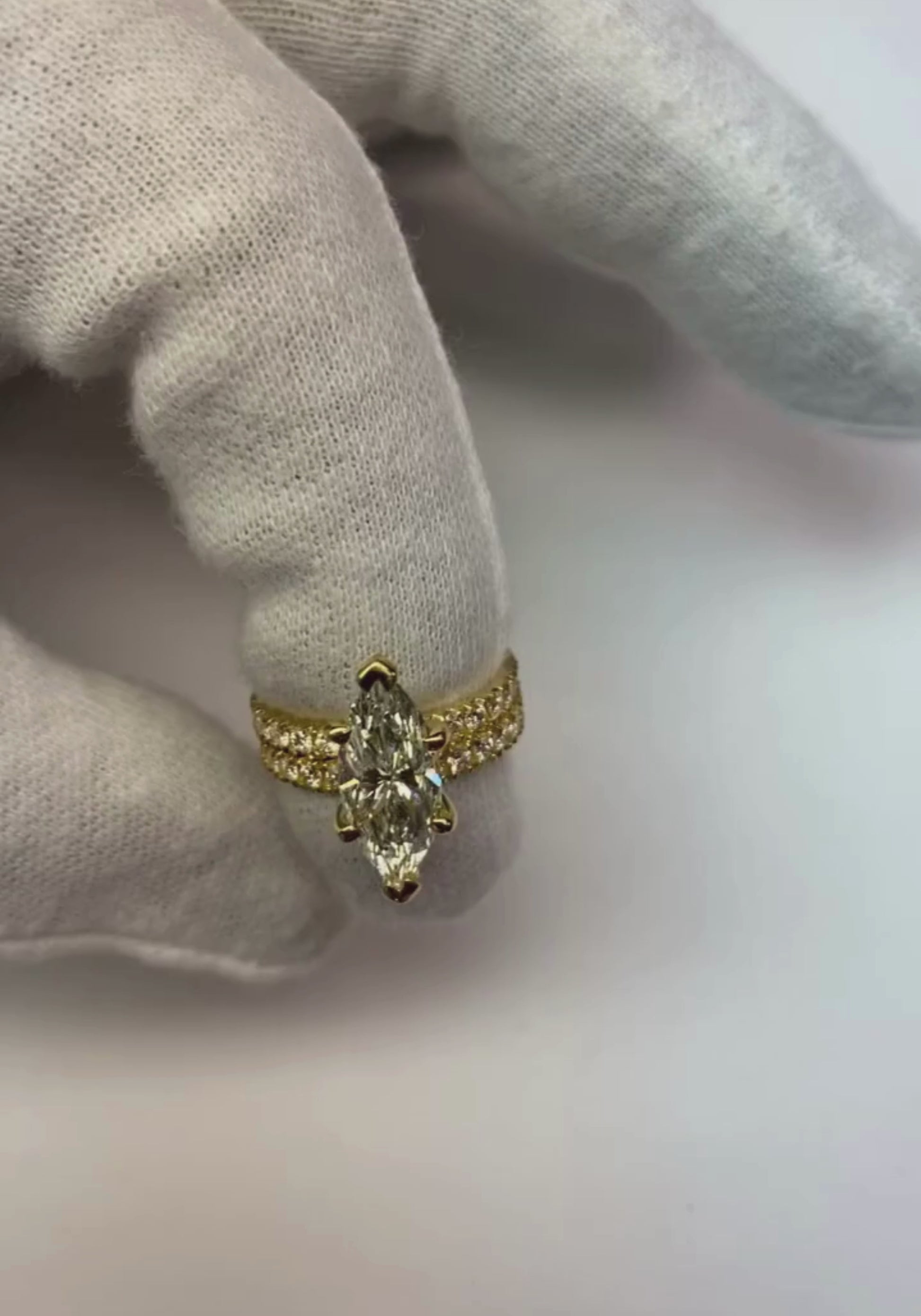 Stone Details : There is one marquise cut diamond in the center approx. 3.50 carats (Approx. Size 13.7 x 7.2 mm) with approx. 1.50 carats total of round diamonds in the set. Designed with natural earth mined diamonds.