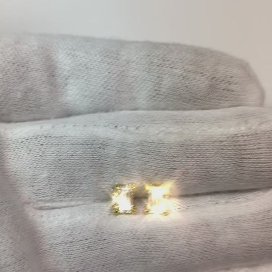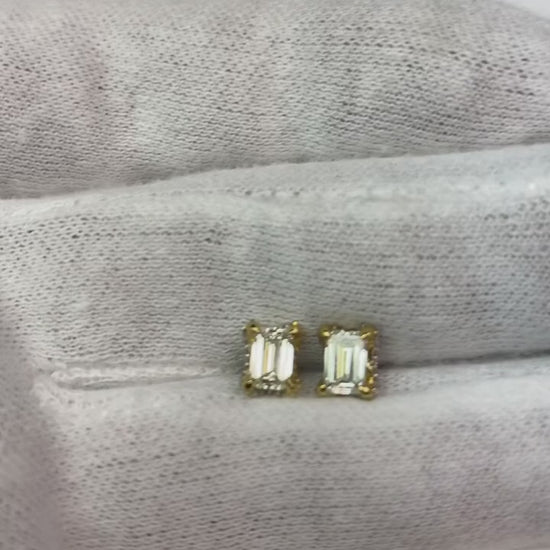 Stone Details : There is one Emerald cut diamond approx. 0.50 carats (Approx. Diameter 5 x 3.7 mm) and smaller round cut diamonds on the sides approx. 0.25 carats in each earring. Natural earth mined diamonds.