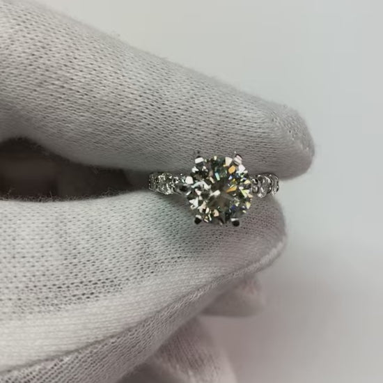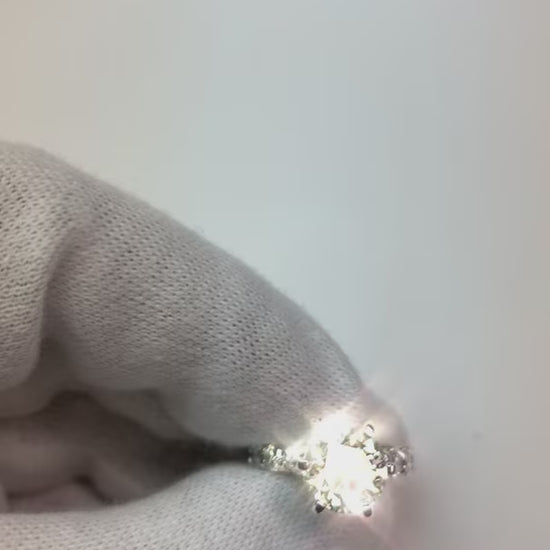 Stone Details : There is one round diamond in the center approx. 3 carats (Approx. Dia. 9 mm) with approx. 2.50 carats of smaller diamonds on the sides. Made with natural earth mined diamonds.