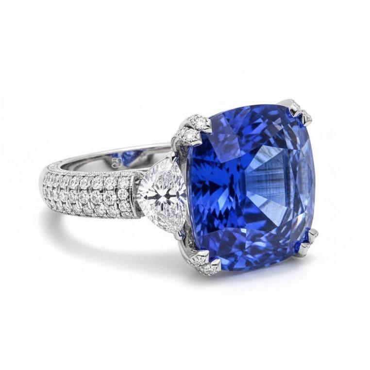 Stone Details : There is one cushion cut sapphire approx. 4 carats (Approx. Size 9 x 9 mm) and approx. 3 carats of diamonds on the sides. Natural earth mined stones.