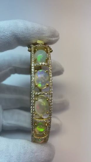 Opal Natural Earth Mined Diamond Bracelet Prong Set 89 Carats Bracelet Women