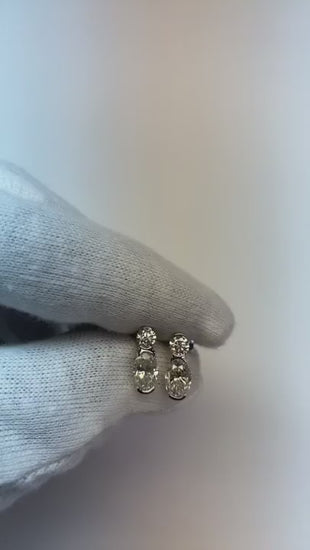 Stone Specifications: There is one oval diamond approx. 1 carat (Approx. Size 6.7 x 4.7 mm) and one round diamond approx. 0.25 carats (Approx. Dia. 3.8 mm) in each earring. Natural earth mined diamonds.