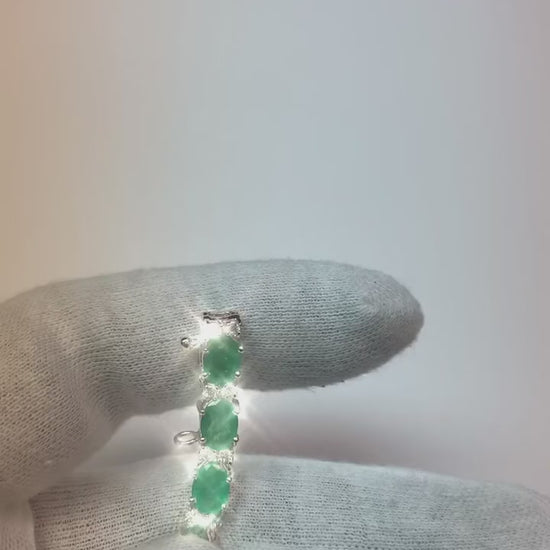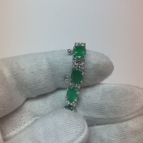 Oval Green Emerald & Round Natural Earth Mined Diamond Tennis Bracelet 15.25 Carats Jewelry