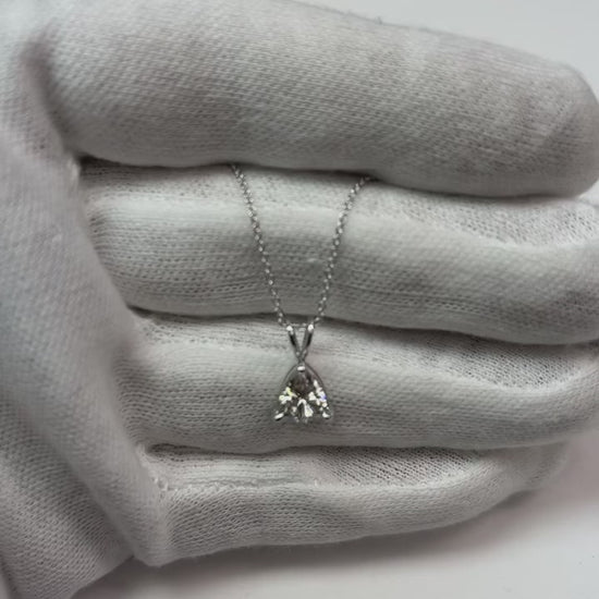 Trillion Mined Diamond Solitaire Pendant Necklace 1.50 Carats White Gold 14K