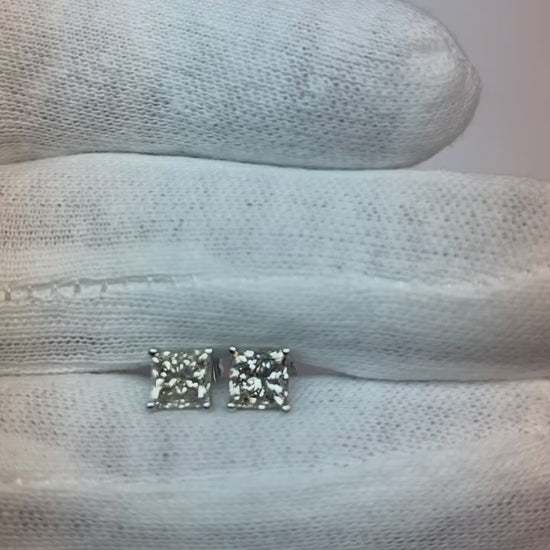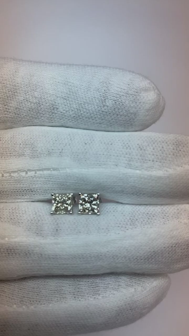 Princess Cut 2 Carats Natural Earth Mined Diamonds Women Studs Earring White Gold 14K