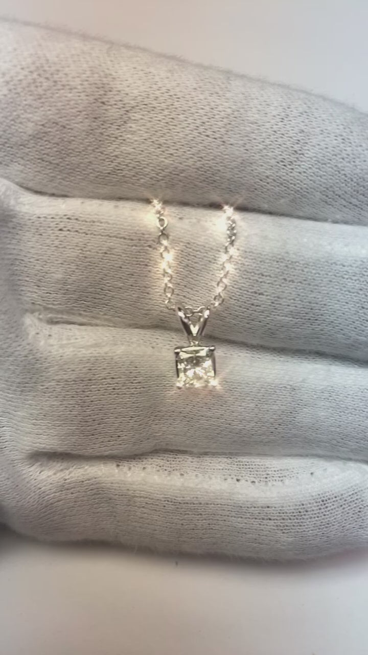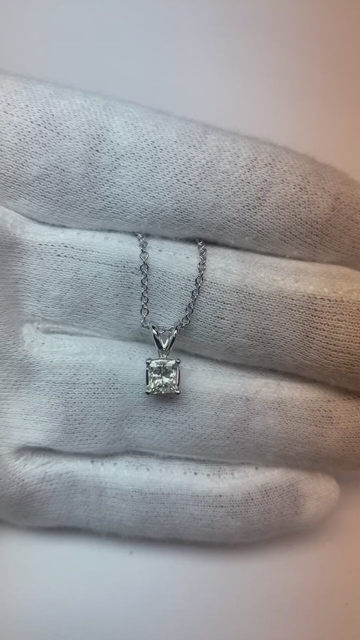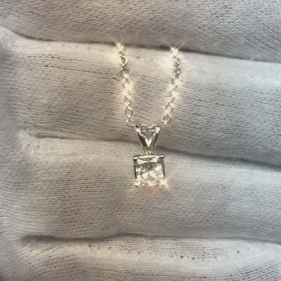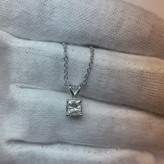 Princess Cut Natural Earth Mined Diamond Necklace Pendant 1 Ct White Gold 14K Jewelry
