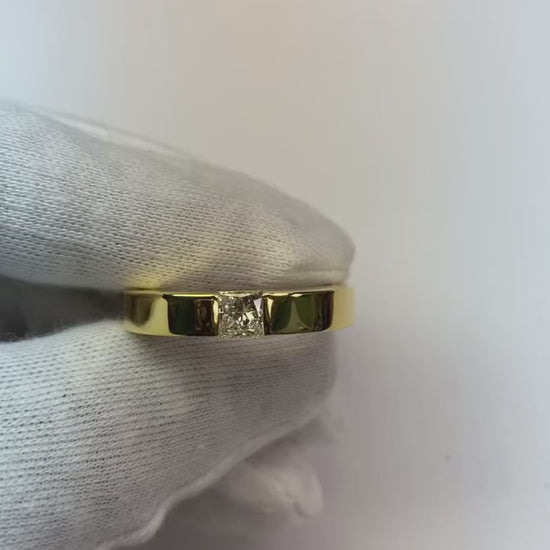 Princess Cut Diamond Tension Set Men's Ring 0.75 Carats Yellow Gold