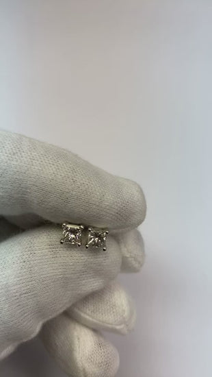 Princess Cut Stud Natural Earth Mined Diamond Earring White Gold 14K 1.20 Ct Prong Set