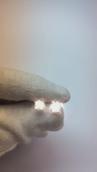 Stone Details : There is one princess cut diamond approx. 0.75 carats (Approx. Size 4.8 x 4.8 mm) in each earring. Natural earth mined diamonds.