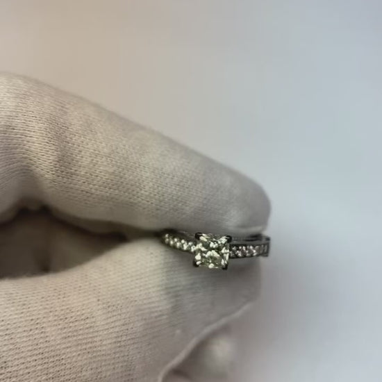 Stone Specifications: There is one princess diamond in the center of approx. 1.01 carats and approx. 0.50 carats of smaller diamonds on the shank. Natural earth mined diamonds.