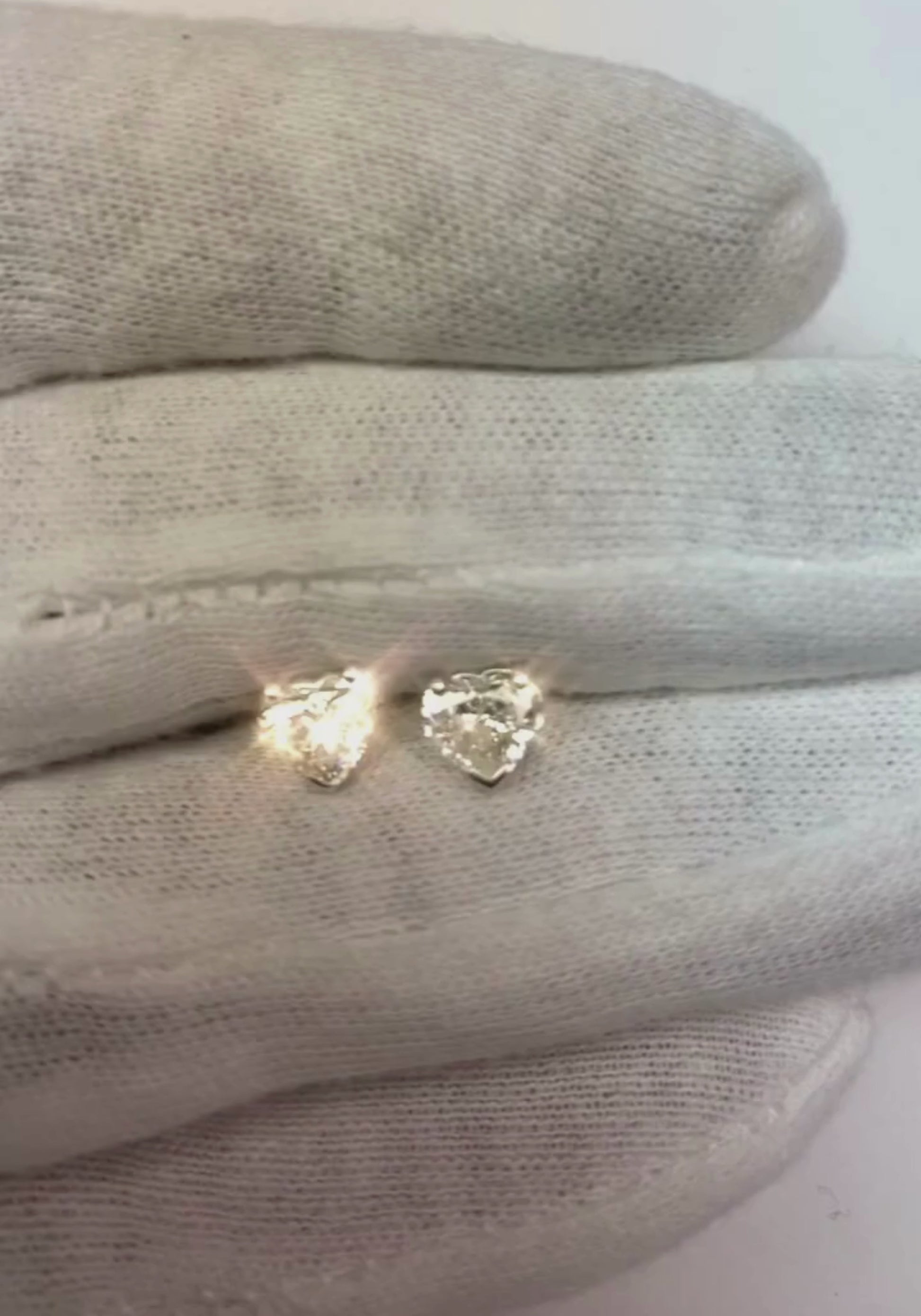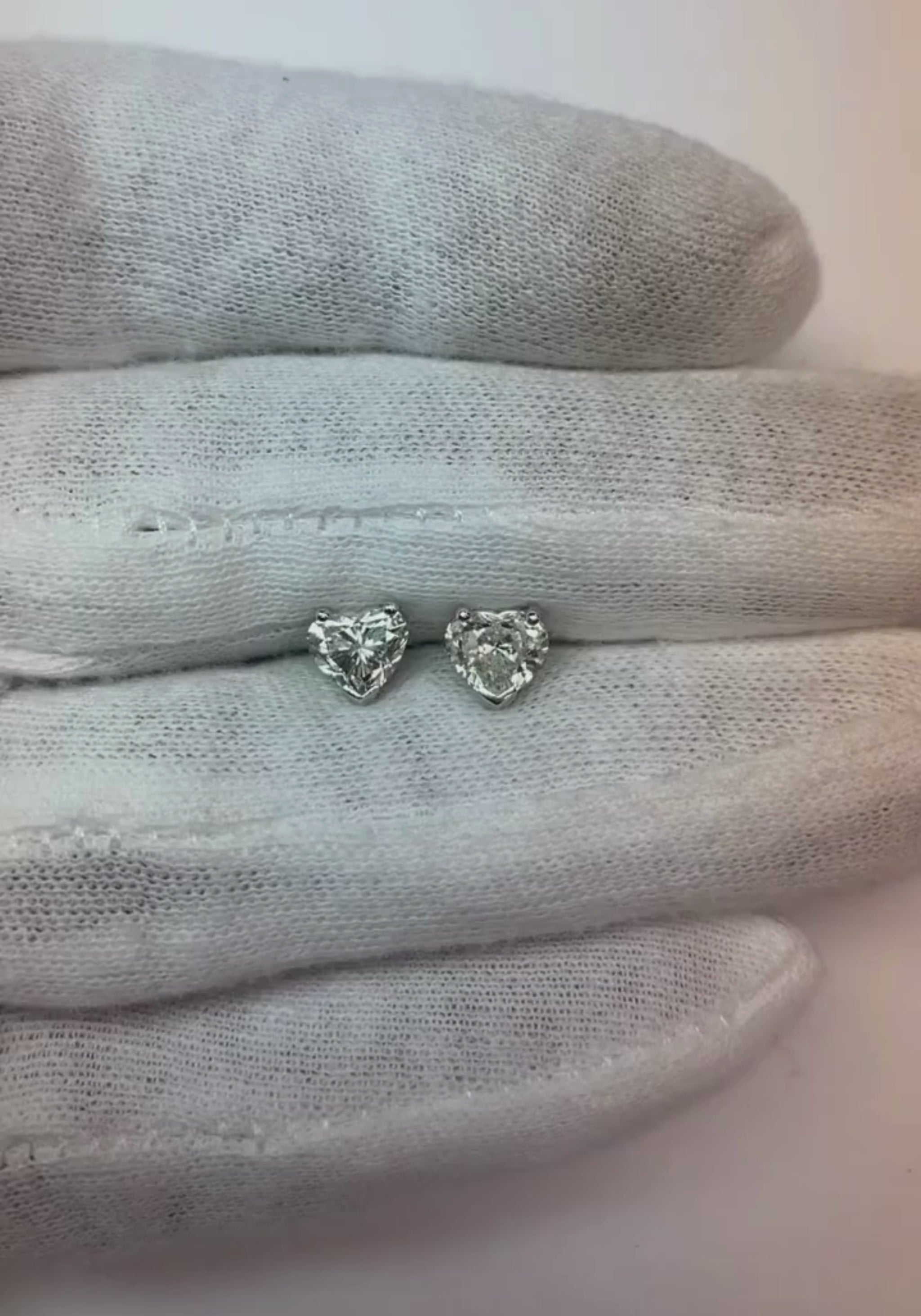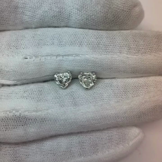 Prong Set Heart Cut Solitaire Natural Earth Mined Diamond Stud Earring Solid Gold Jewelry