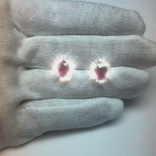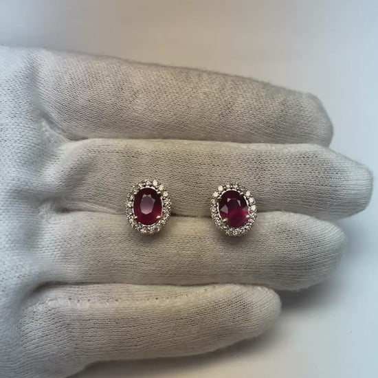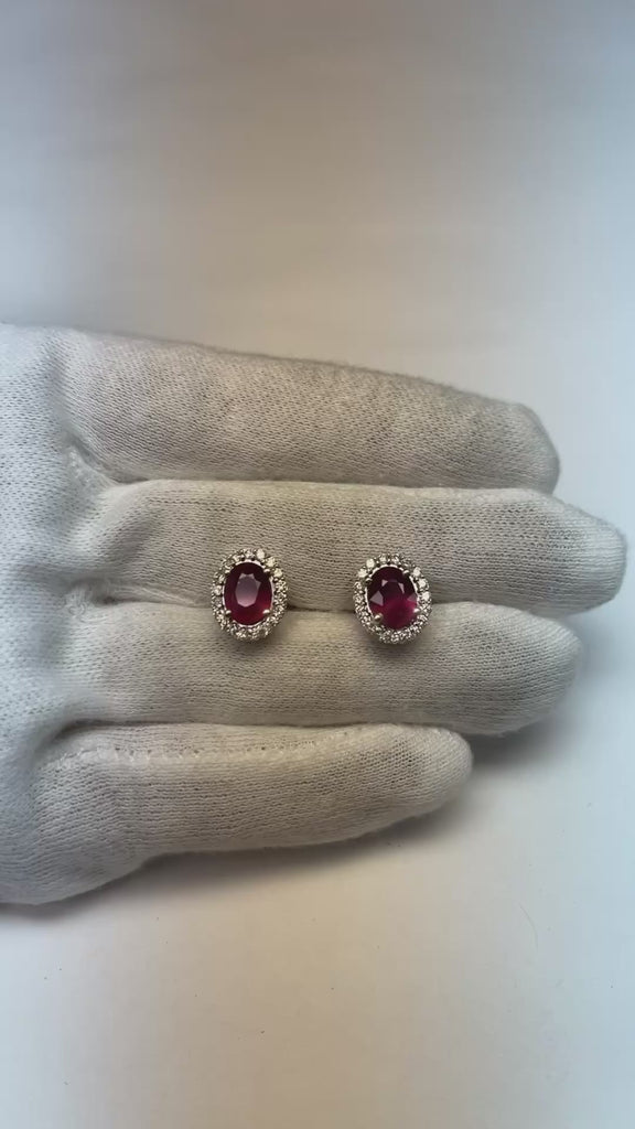 Stone Specifications: There are two rubies approx. 3.75 carats each (Approx. Size 12.3 x 8.1 mm) & approx. 0.50 carats round smaller diamonds on the side in each earring. Natural earth-mined stones.