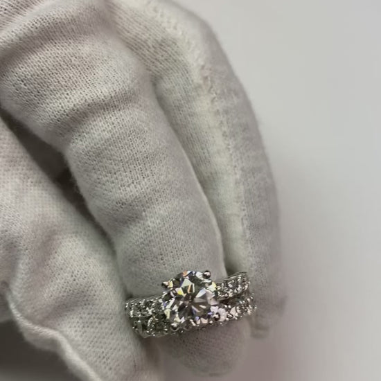 Stone Details : There is one ring with one round diamond in the center approx. 2.75 carats (Approx. Dia. 8.8 mm) with approx. 0.80 carats of round diamonds on the sides. With two bands with approx. 8.30 carats total of round diamonds along the sides. Designed with natural earth mined diamonds.