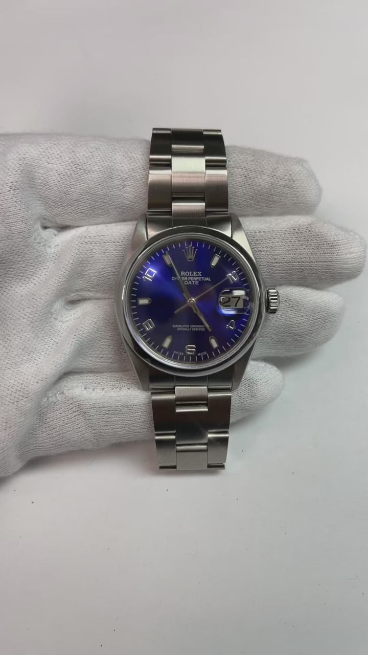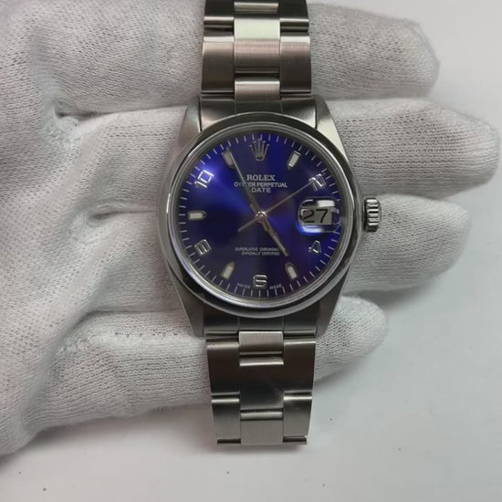 Rolex 15200 Oyster Perpetual Date Blue Arabic 34mm SS Watch
