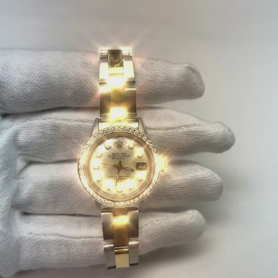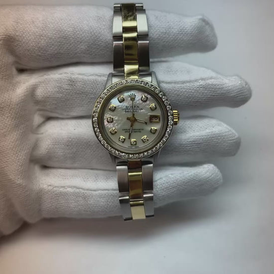 Rolex Datejust 26 mm White Mother Of Pearl Diamond Dial Two Tone Oyster Bracelet Watch