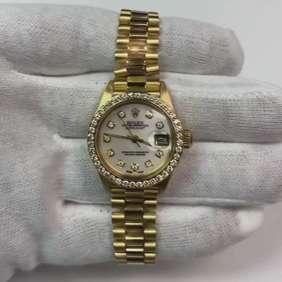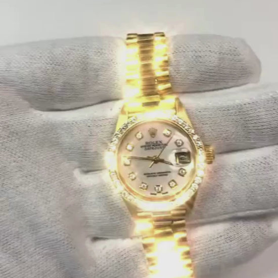 Rolex Dj President Style Watch White Mop Diamond Dial Bezel Gold