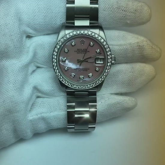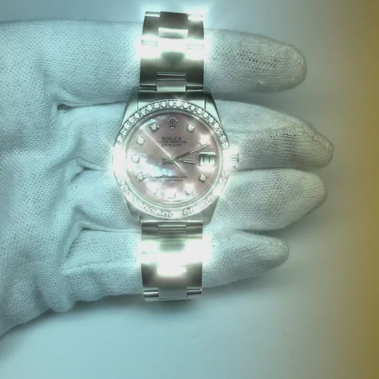 Rolex Dj Watch Pink Mother Of Pearl Dial Custom Diamond Bezel Ss