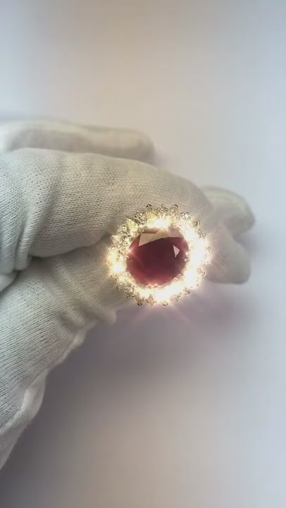 Stone Specifications: There is one ruby in the center of approx. 13.75 carat & approx. 4.00 carats of smaller round diamonds on the side. Lab Grown Ruby and Lab Grown Diamonds.
