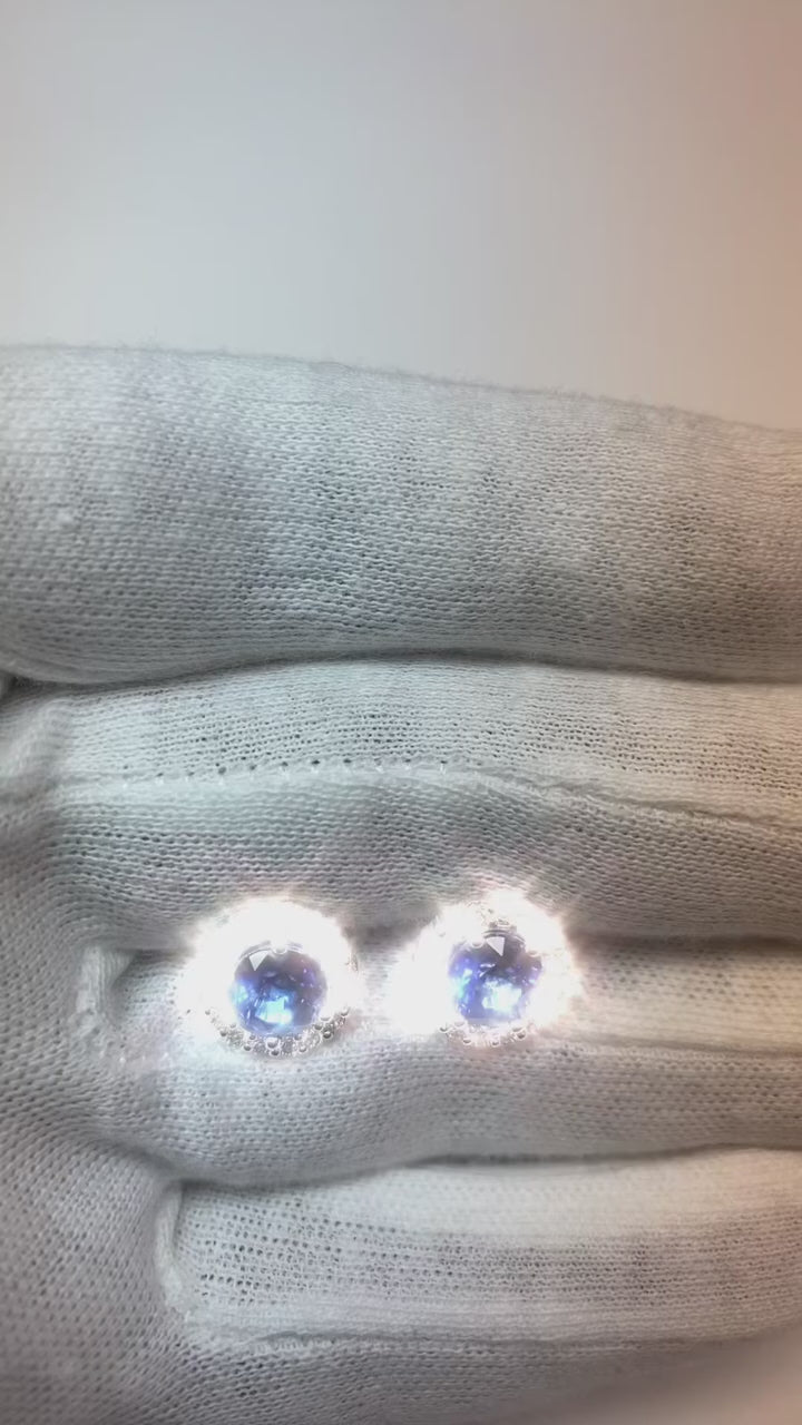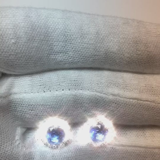 Round Ceylon Sapphire 4.60 Carats Studs Earring White Gold 14K