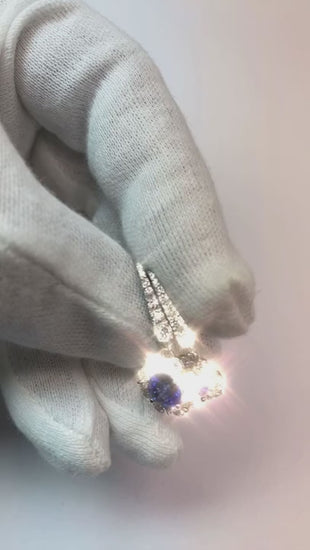 Stone Specifications: There are two blue sapphires approx. 1 carat each (Approx. Dia. 6 mm) & approx. 0.25 carats round smaller diamonds on the side in each earring. Natural earth-mined stones.