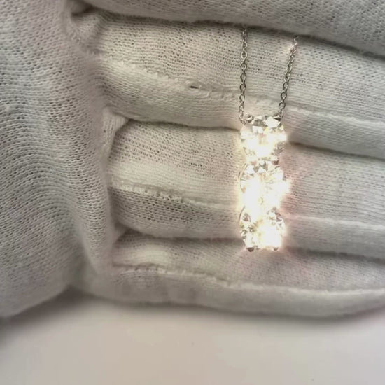 Round Earth Mined Diamond 3 Stone Journey Pendant 3.75 Carats Gold 14K