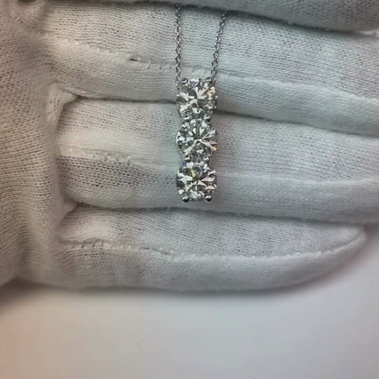 Stone Details : There are three round diamonds approx. 1.25 carats each (Approx. Dia. 6.7 mm) in this pendant. Natural earth mined diamonds.