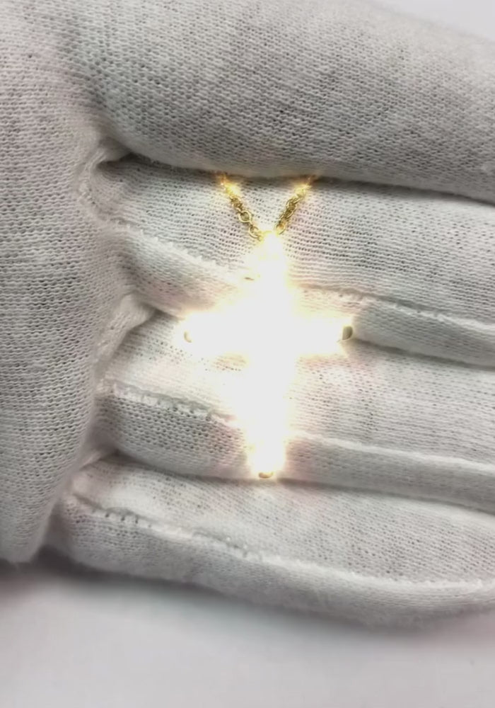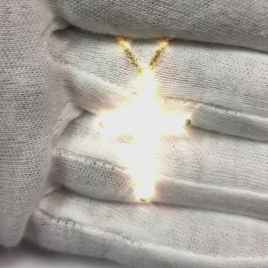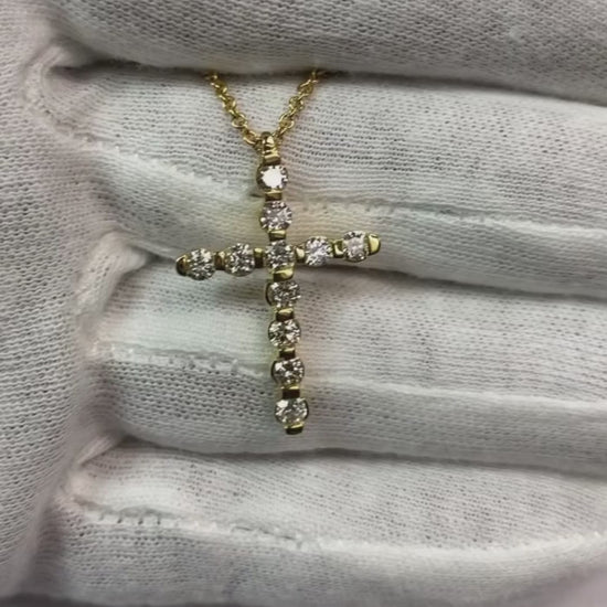 Round Natural Earth Mined Diamond Cross Necklace Pendant 1.10 Carat Yellow Gold 14K