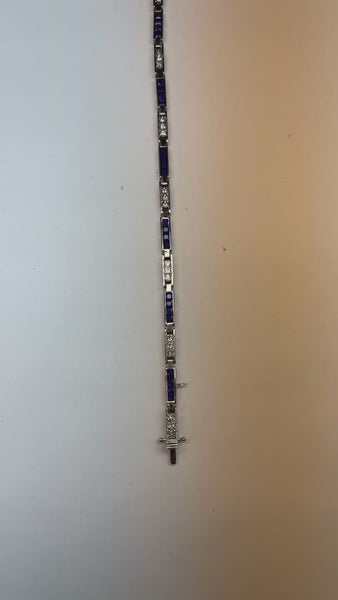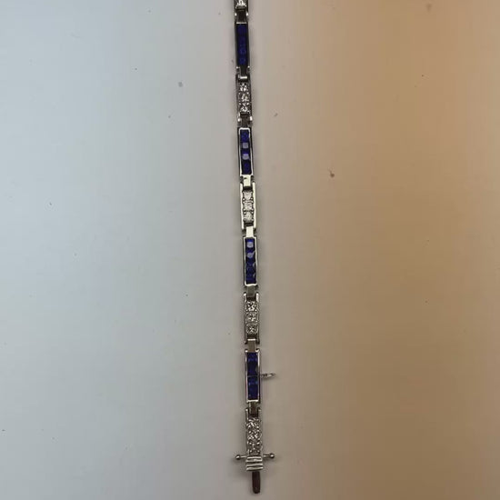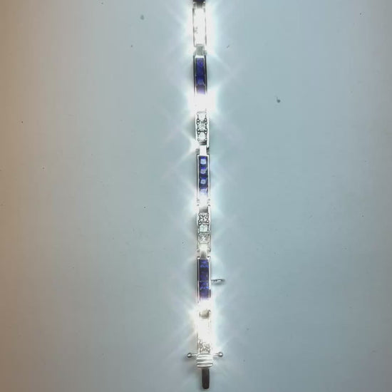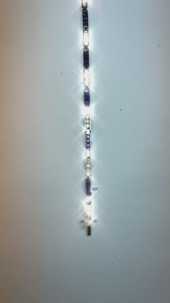 Round Natural Earth Mined Diamond & Princess Sapphire Tennis Bracelet