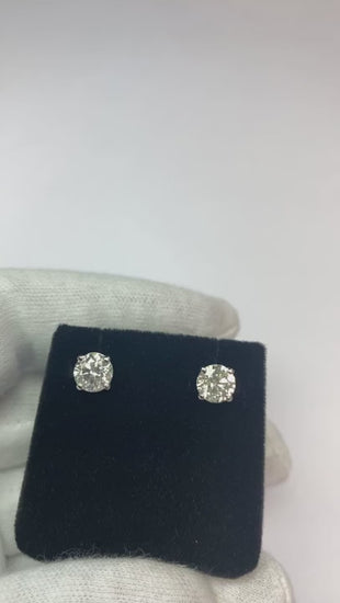 Stone Details : There is one round cut diamond approx. 1 carat (Approx. Diameter 6.3 mm) in each earring. Natural earth mined diamonds.