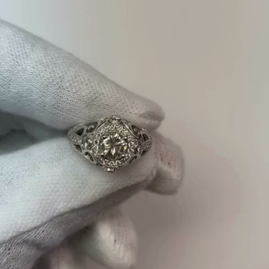 Round Natural Earth Mined Diamond Engagement Anniversary 1.10 Carat Fancy Ring WG 14K
